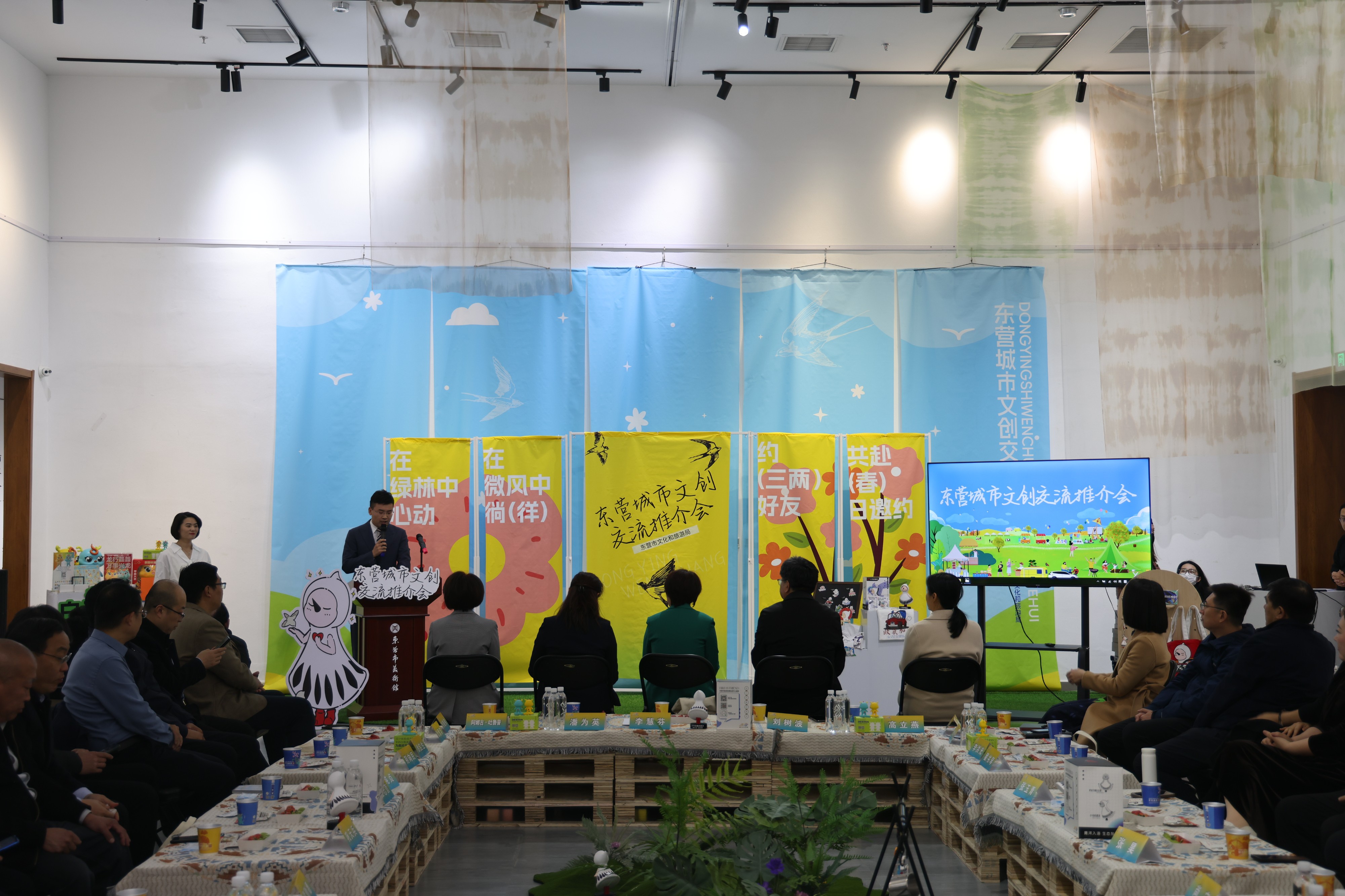 4月3日,东营城市文创交流推介会在市美术馆举行。邀请来自全市相关部门、市县两级文旅部门、文创企业、短视频博主、媒体等相关人士,围绕东营文旅推介和文创产品打造进行了一场“头脑风暴”。会上,发布了“黄河口护鸟使者”——“小鸟的朋友”城市文化IP。并为白马文创等东营文创企业和工作室授牌颁发“东营文创‘春芽计划’工作室”。现场还对东营文旅最新推出的“绿皮火车慢游东营”宣传推广活动进行了推介。