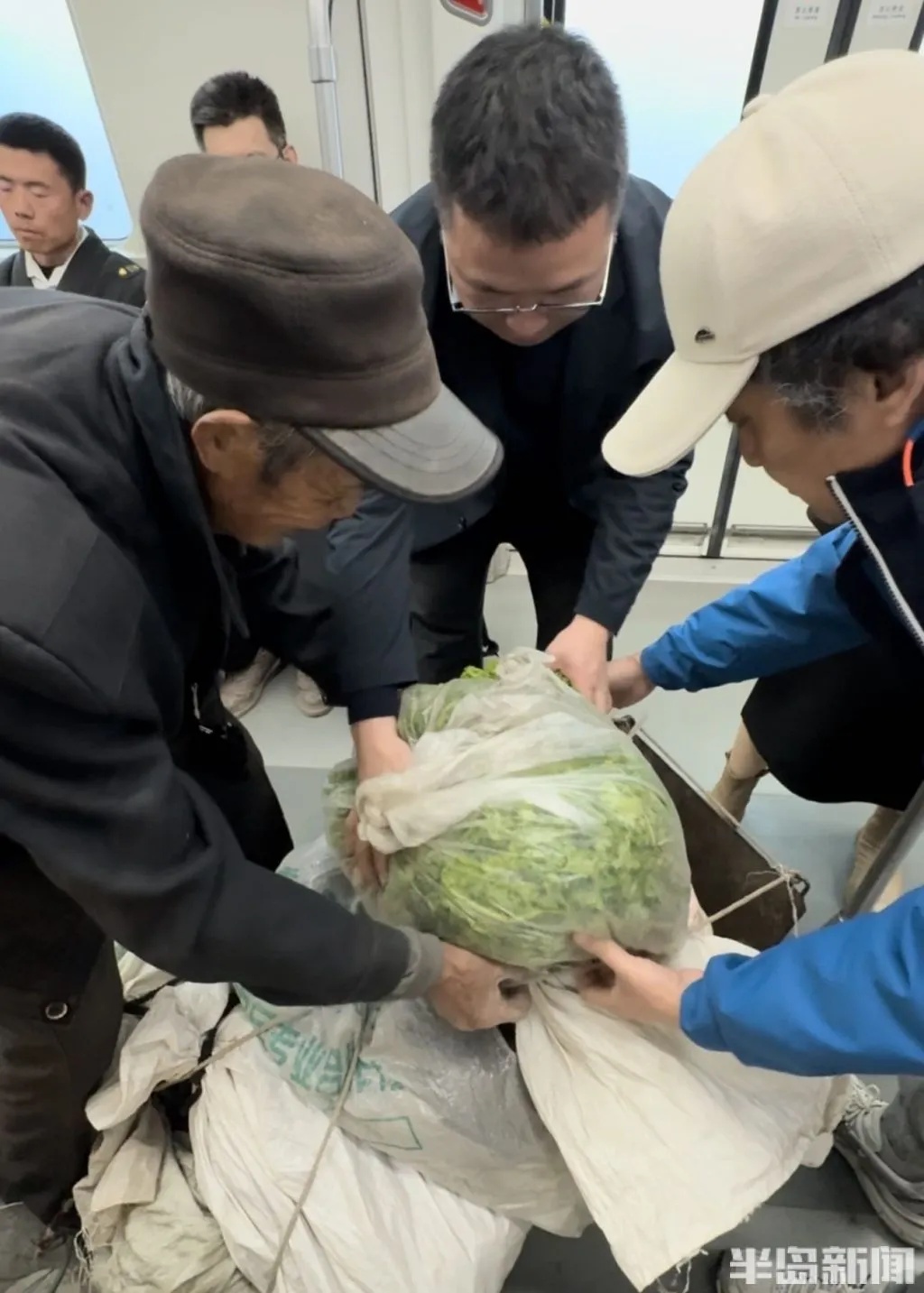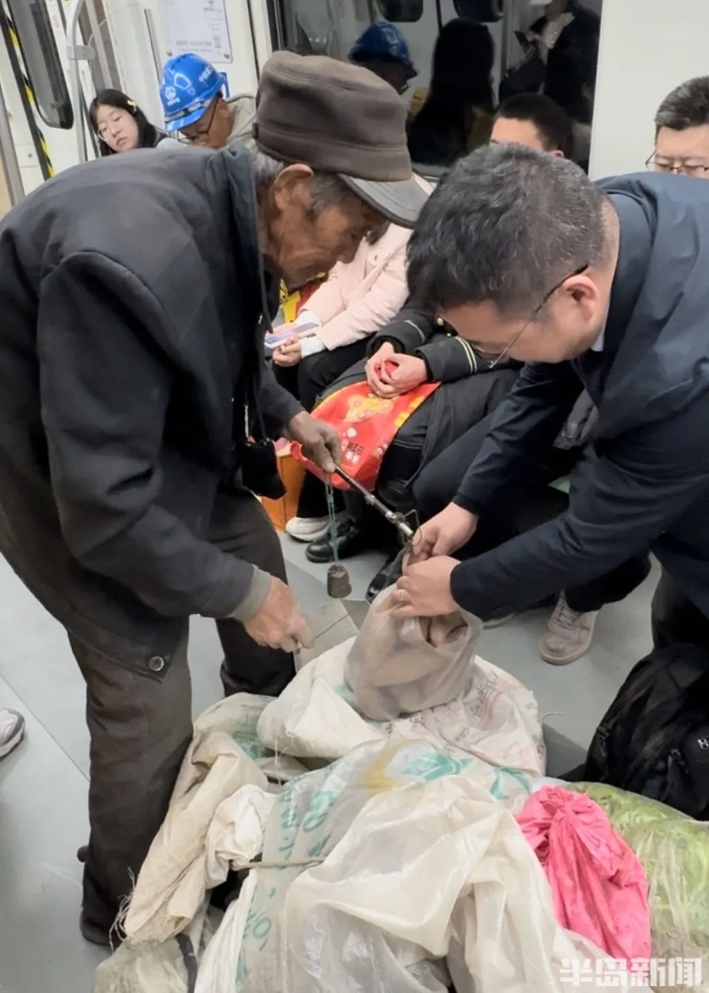 “老人抱着秤,一看老人就是卖东西的,推着这么多大包小包,应该是没卖完。”穿西装的男乘客告诉记者,“真不是多大的事,就想帮老人减轻一下回家的负担,也希望老人多挣点钱。当然,正好家里也没有地瓜了……”