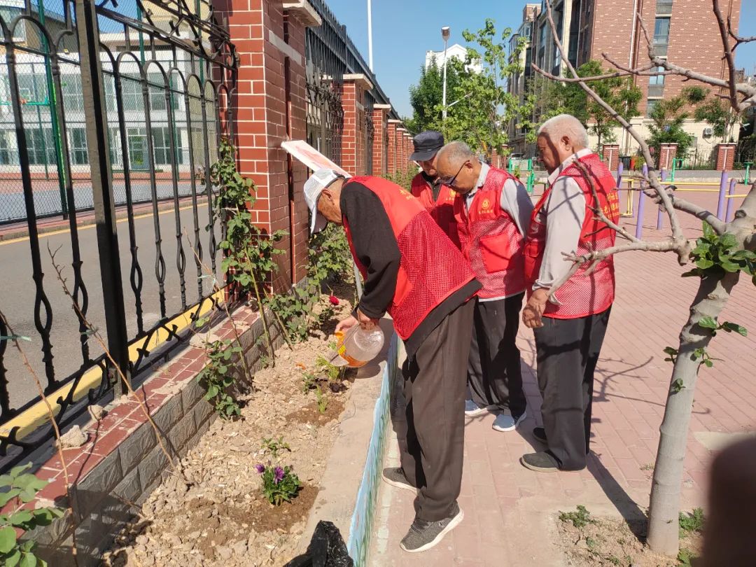 近日,丽景社区胜源南区老党员志愿服务队在“半亩花田”开展“补种花苗 美化环境”志愿服务活动。
