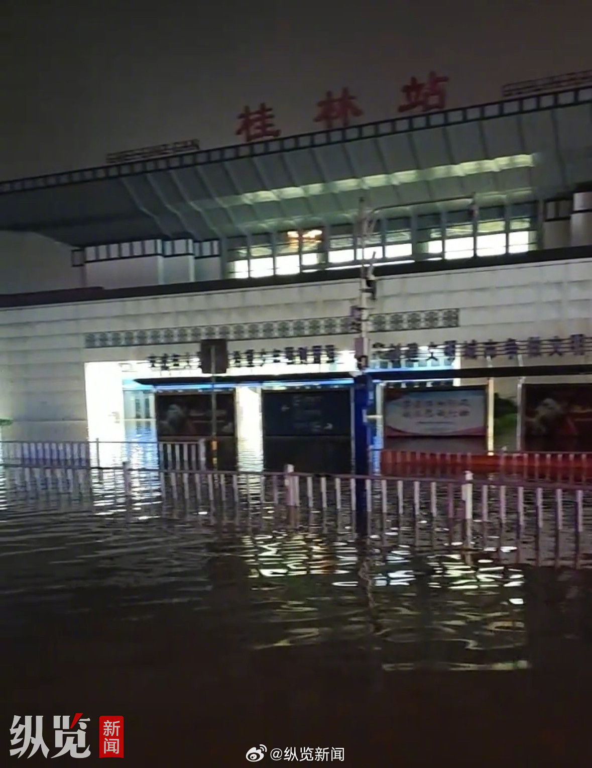 12306回应桂林火车站被淹:客运服务暂停,车次停靠桂林北