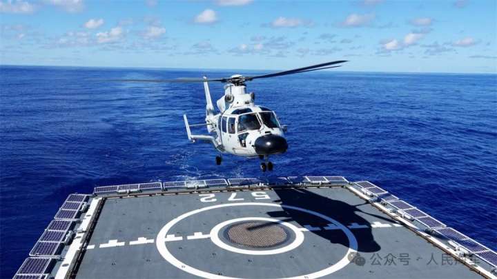 ▲俄舰直升机巡逻警戒。马天傲 摄