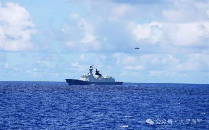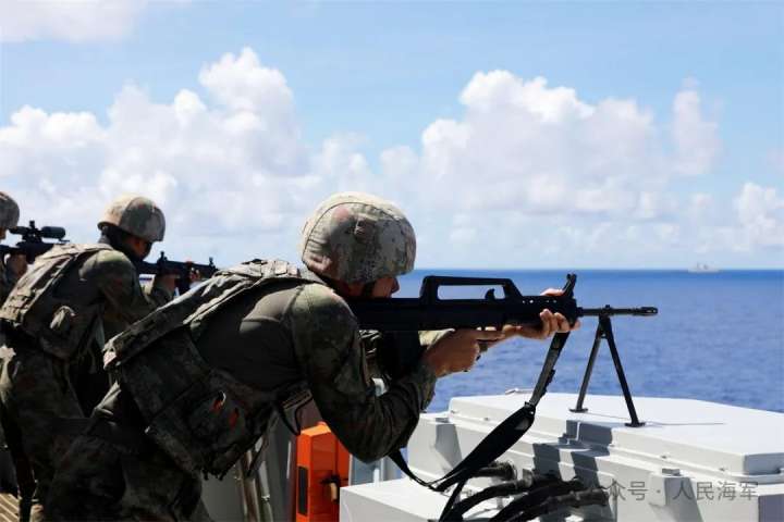 ▲中俄联合巡航编队组织临检拿捕演练。陈堂贵 摄