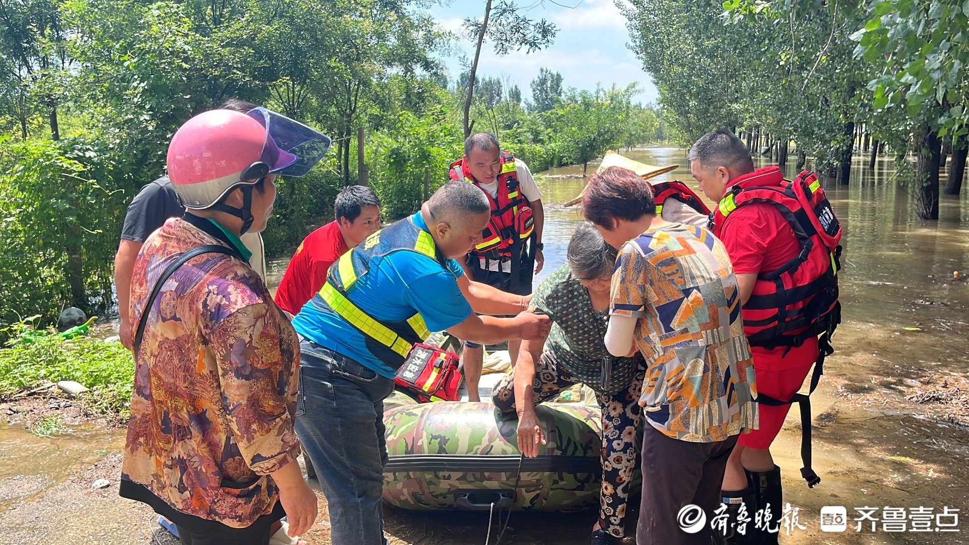 7月20日上午,济宁泗水县红十字泉乡应急救援队接到群众来电求助,有两位老人因突降暴雨被困家中,请求泉乡应急救援队帮助救援。接到求助信息后,救援队立即组织队员,携带冲锋舟、救援绳索和工具前往救援。