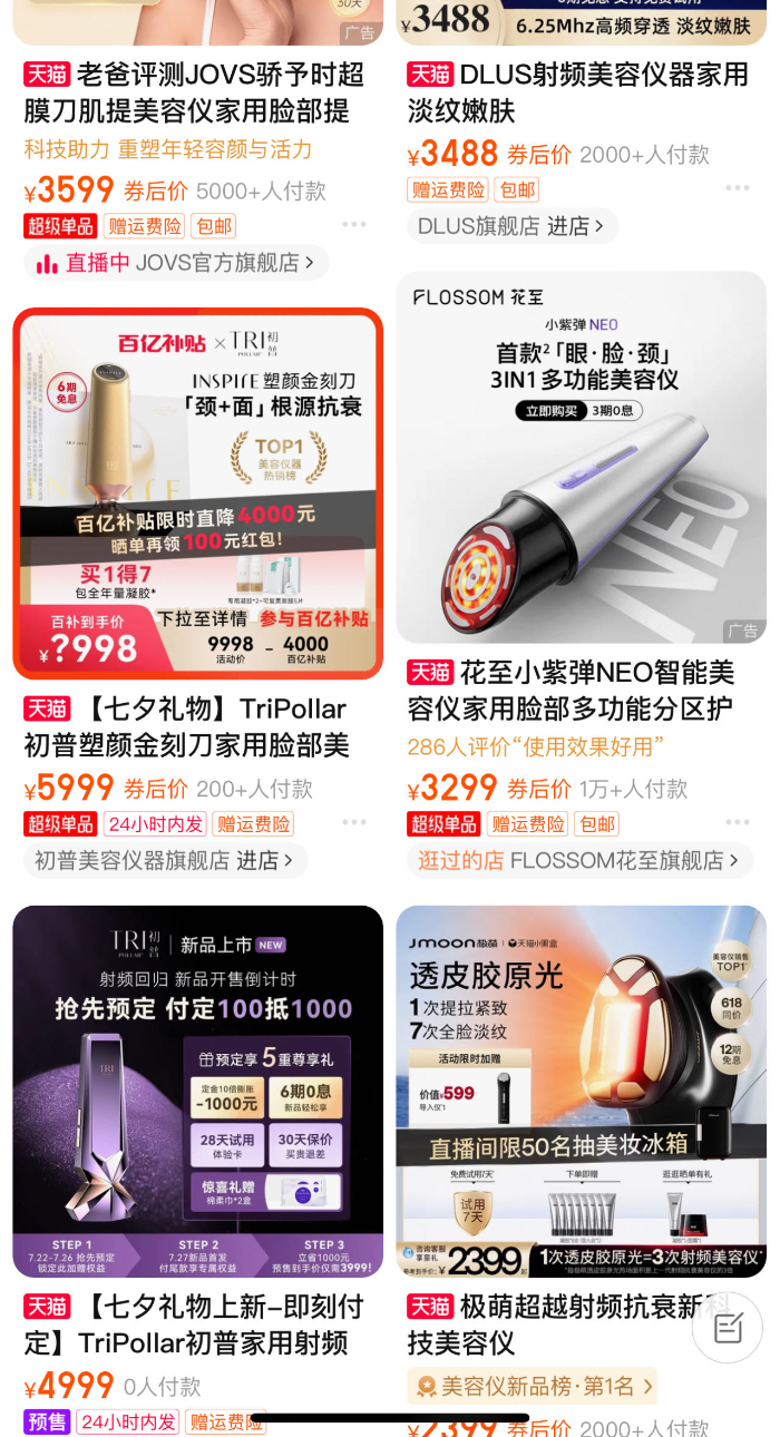 记者搜索多个电商平台发现,美容仪品牌雅萌、觅光、初普、OGP等旗下射频美容仪产品已重新上架。与此同时,记者注意到,此前大降价的部分射频美容仪产品,上架后,价格已恢复至千元左右。