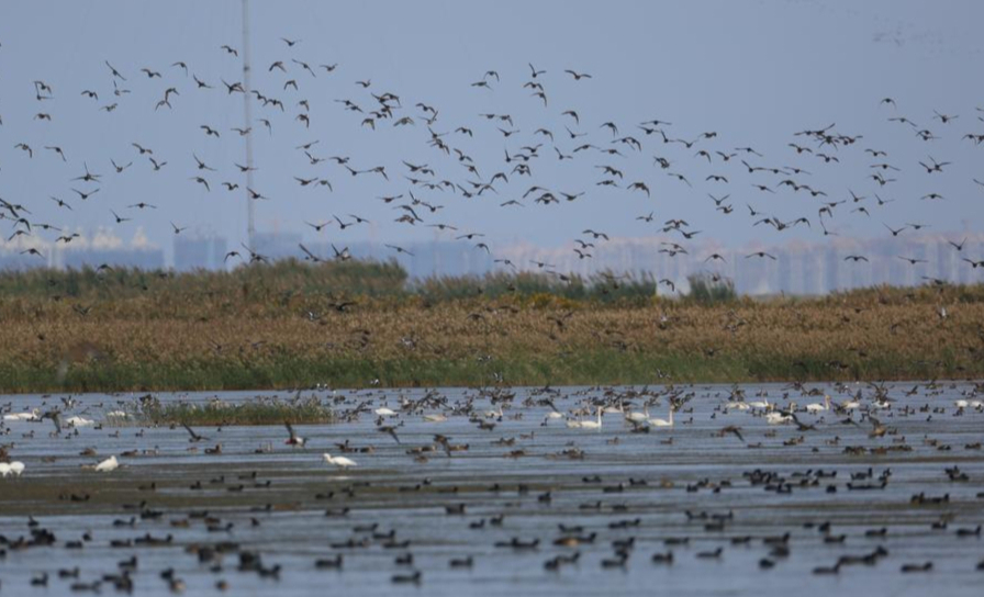 秋分时节,沿上海崇明东滩自然保护区生态围堤而行,一声声清脆的鸟鸣时而响起。滩涂上,觅食的鸟儿悠闲自得,或白或灰或色彩斑斓的羽毛甚是好看;而在保护区大堤内侧,芦苇摇曳生姿,水鸟们出没其中。