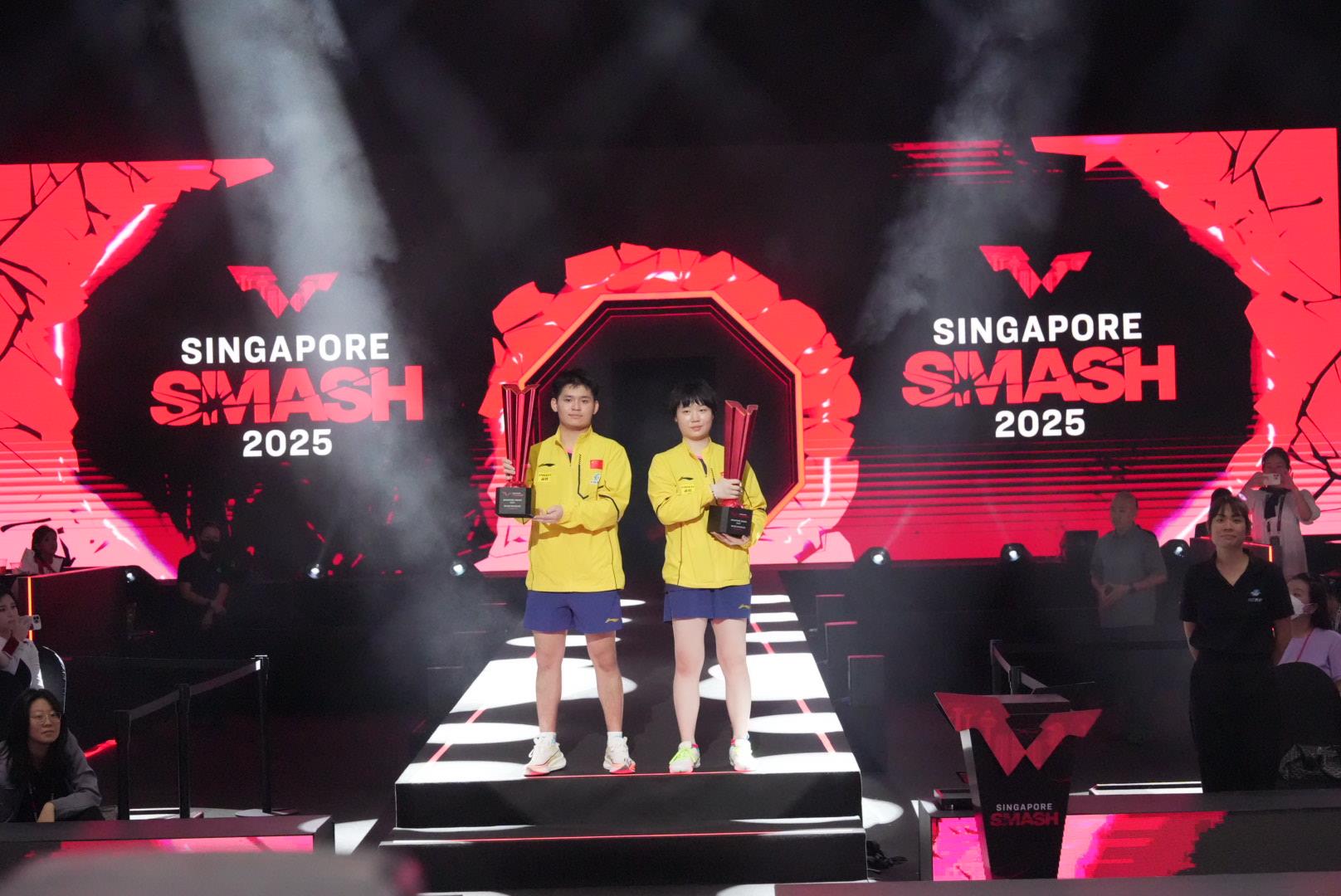 2月7日晚,2025年WTT新加坡大满贯混双决赛中,中国混双组合林诗栋/蒯曼战胜日本混双组合松岛辉空/张本美和,夺得冠军。(央视新闻)