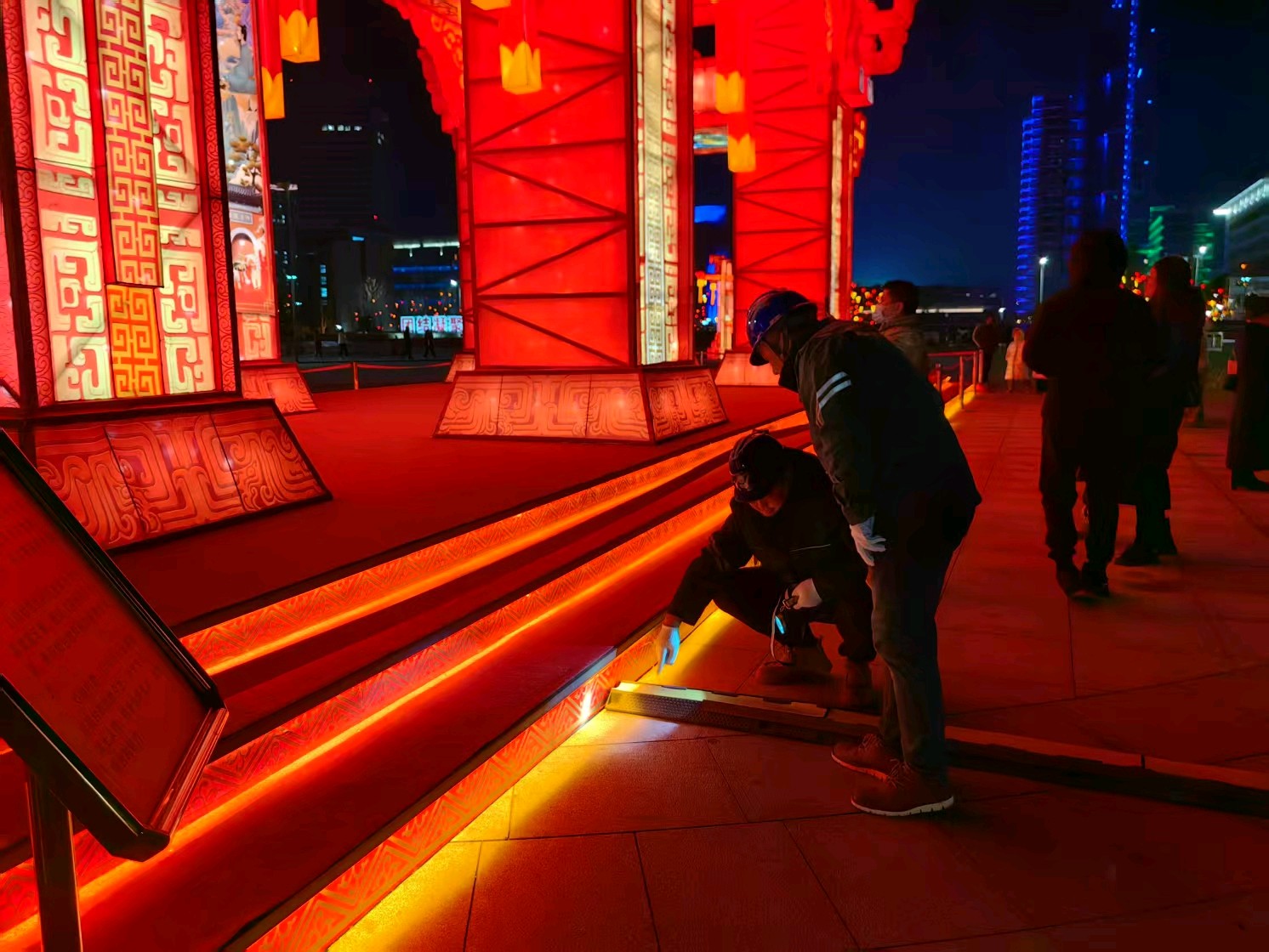 2月10日,国网烟台供电公司组织巡检人员对烟台市民休闲公园花灯的配电设备,进行了一次全方位的巡检,确保花灯继续璀璨绽放。