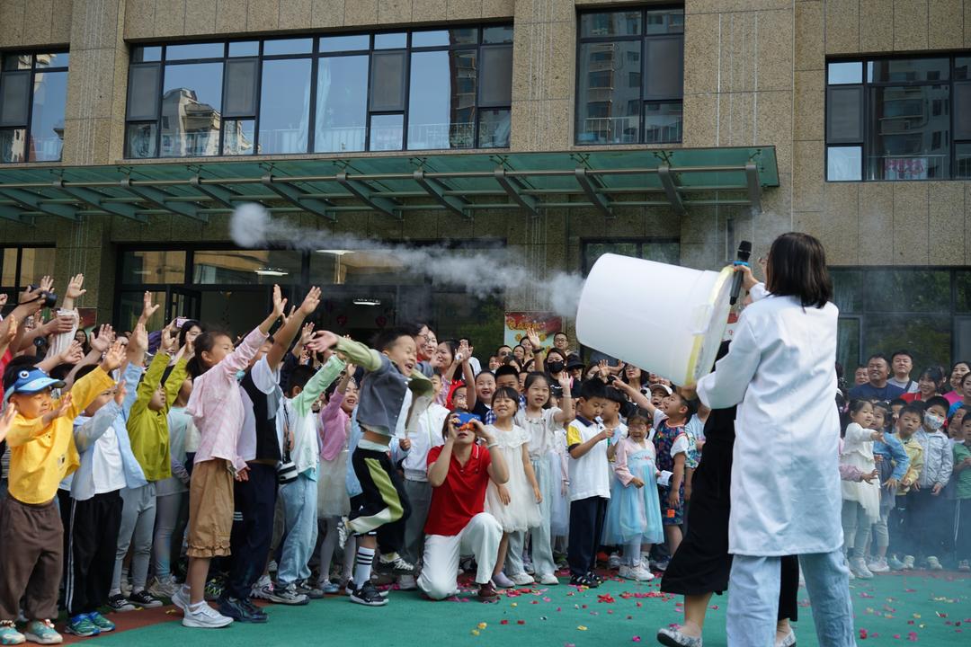 活动在奇妙酷炫的科技秀中拉开序幕。随后,园长王效杰向孩子们送上节日祝福,鼓励孩子们大胆尝试、积极思考、快乐探索,收获探索未知的自信和勇气。