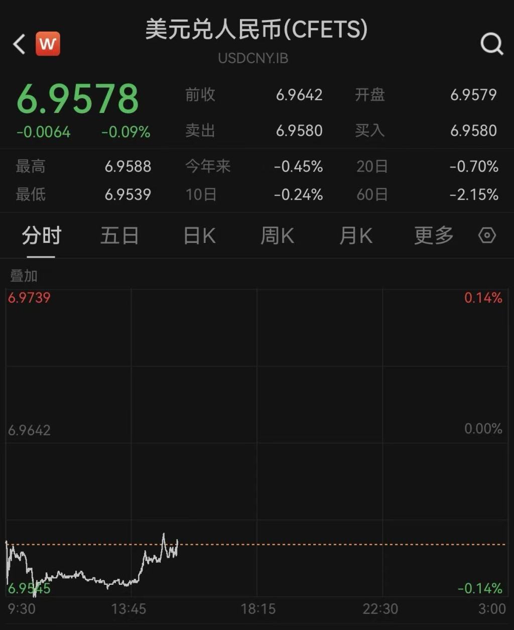 1月26日,人民币对美元即期汇率盘中最高升至6.9539,再度创下2023年5月17日以来的新高。