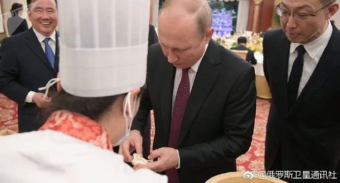 俄罗斯总统普京在中国试做并品尝了狗不理包子。俄罗斯卫星通讯社社交媒体截图