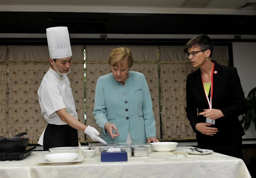 2014年,时任德国总理的默克尔在其第七次访华之旅期间,到访成都本土农贸市场、观摩川菜制作过程。默克尔购买了郫县豆瓣酱与八角,并观看了四川名菜宫保鸡丁的每一个步骤和技巧。