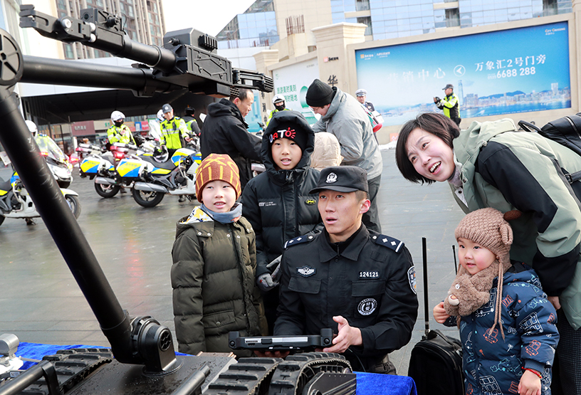 在警民互动区,大屏循环播放《烟台110——以警之名》宣传片;特警无人机、巡逻机器人等信息化警用装备,搜排爆、狙击枪等“高精尖”设备武器,攀登突击车、排爆装备车、水炮车、PTU巡防车、消防车、救护车和交警铁骑等“特种车辆集群”依次摆开;开展“我与警旗合影”和“警童之家”活动,组织“我是小警察”游戏和119防火灭火、120现场急救模拟体验,增加现场活动的互动性、趣味性,丰富了政务警务公开形式,大力激发广大群众及社会各界积极参加警民共建、广泛参与群防群治的热情。(通讯员 张瑞 刘丹 臧保东)