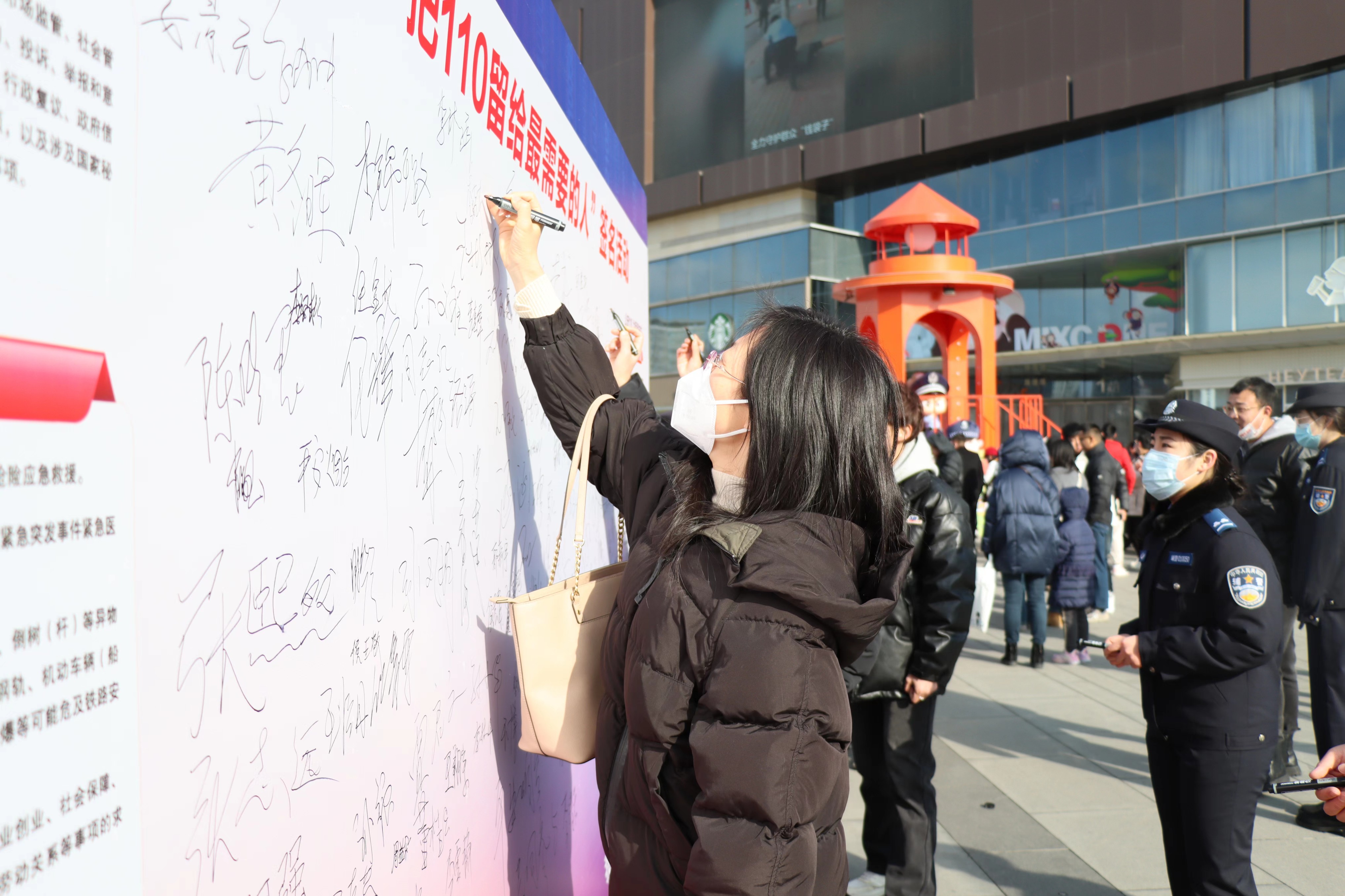 在签名活动区,开展“把110留给最需要的人”为主题的签名活动,宣传110受理范围,如何正确拨打110,骚扰、虚假报警需承担的法律责任,以及110与12345、消防、应急等部门联动,让群众深入了解110,支持当前开展的非警务警情分流工作,把110留给最需要的人,进一步提高“12345,服务找政府;公安110,为民保安宁”的思想认同。