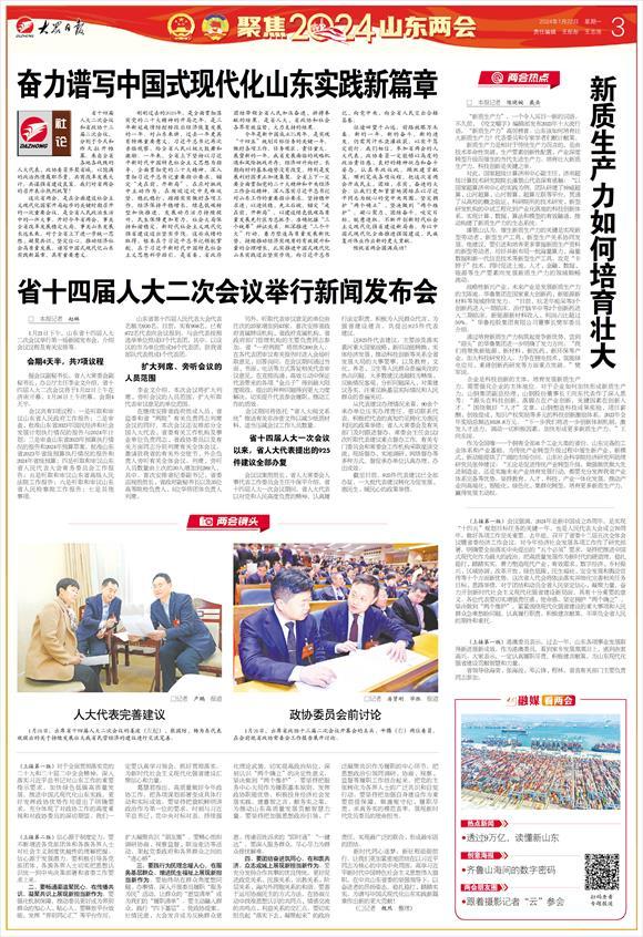 “新质生产力”,一个令人耳目一新的词语。不久前,《咬文嚼字》编辑部发布2023年十大流行语,“新质生产力”高居榜首。山东该如何培育壮大新质生产力?代表委员和专家学者们献计献策。