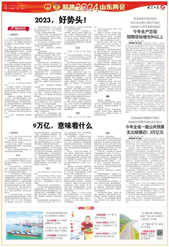 山东省2023年预算执行情况和2024年预算草案的报告提出