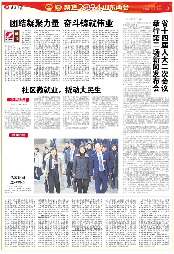 今年的省两会,是一次高举旗帜、民主团结、求实奋进的大会。与会代表委员以高度的政治责任感,就山东经济社会发展中的重大问题,忠实履行职责,积极建言献策。会议审议通过的《政府工作报告》和其他各项报告,总结成绩实事求是,分析形势深刻透彻,部署任务重点突出,凝聚着代表委员的集体智慧,体现了全省人民的共同意愿,对奋进新征程、谱写新篇章,具有十分重要的意义。全面落实省两会部署,扎实做好今年各项工作,全省上下一定要以习近平新时代中国特色社会主义思想为指导,深入落实习近平总书记对山东工作的重要指示要求,锚定“走在前、开新局”,坚定扛牢经济大省责任,稳扎稳打、踏踏实实,扎实推进中国式现代化山东实践,努力在新时代社会主义现代化强省建设新征程上展现更大作为、作出更大贡献。