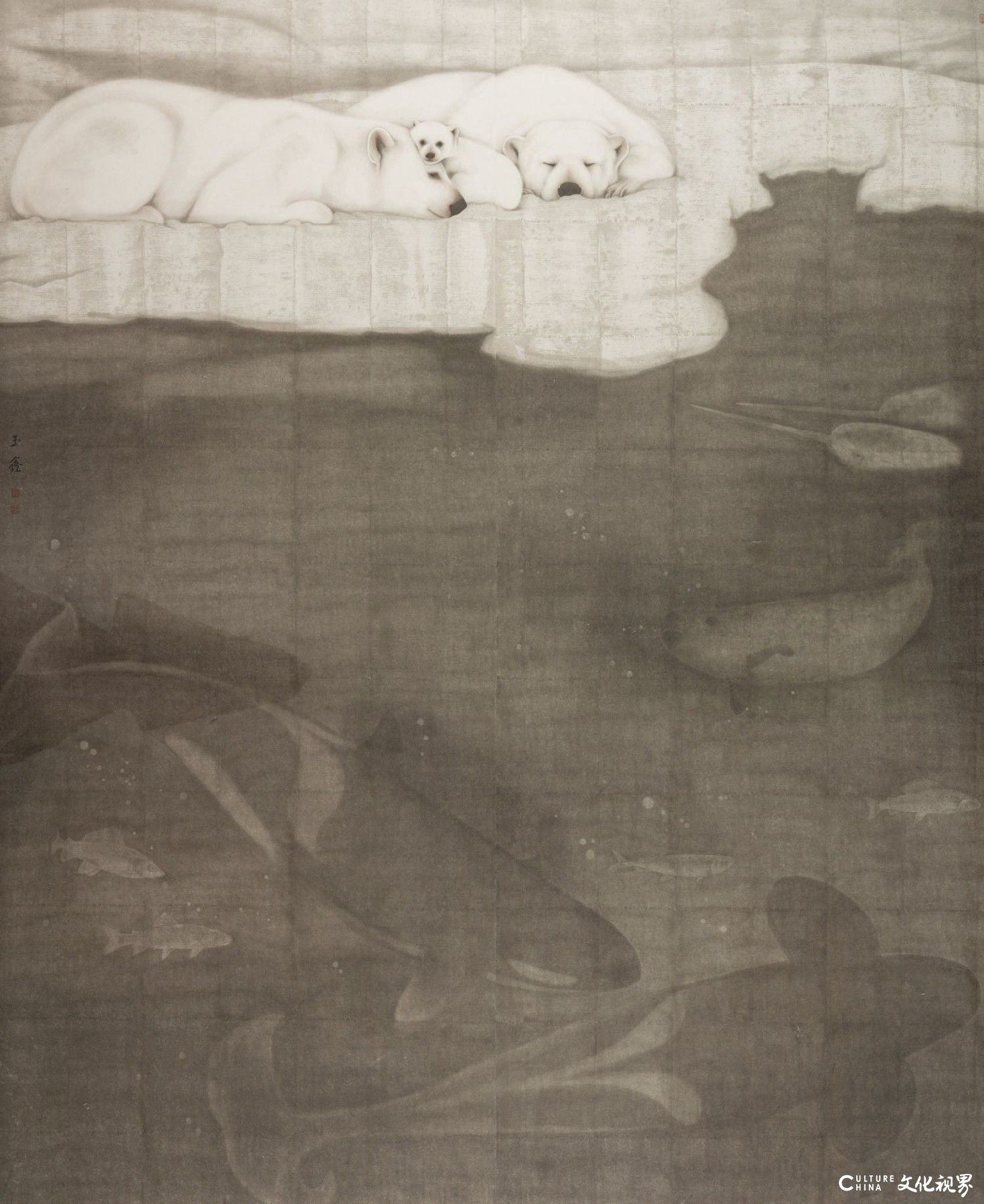 罗玉鑫谈中国画《休戚与共》丨北极熊一家惬意地趴在冰层上休憩……越纯粹的画面越接近人的心灵