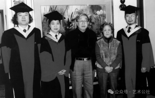 与导师袁运甫先生、师母钱月华先生与首届绘画博士生刘斌、刘旭光合影