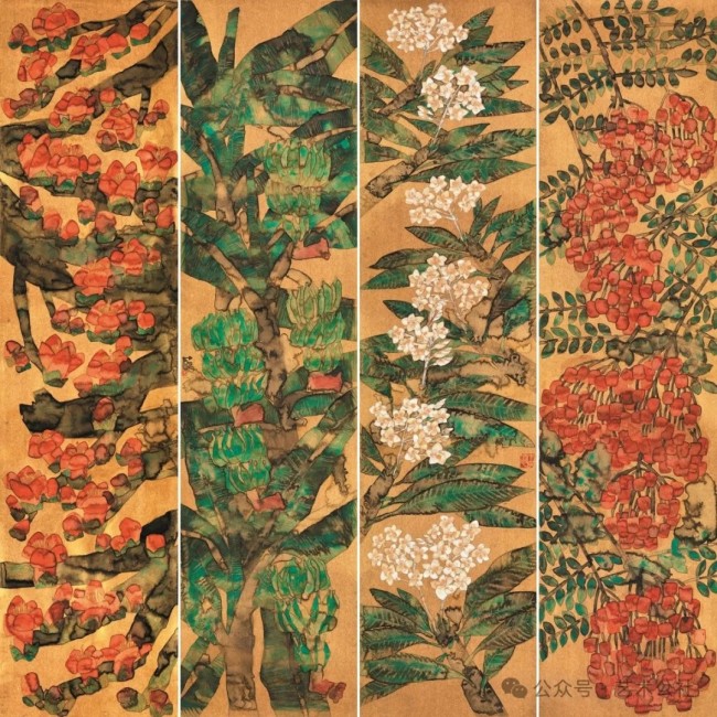 岭南风情——木棉、芭蕉、蛋花、荔枝300cm×75cm×4 2018年