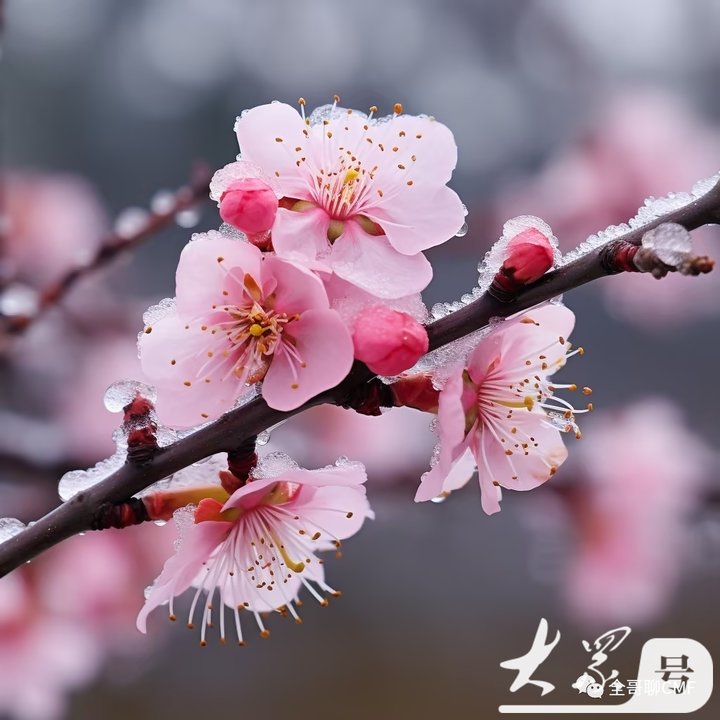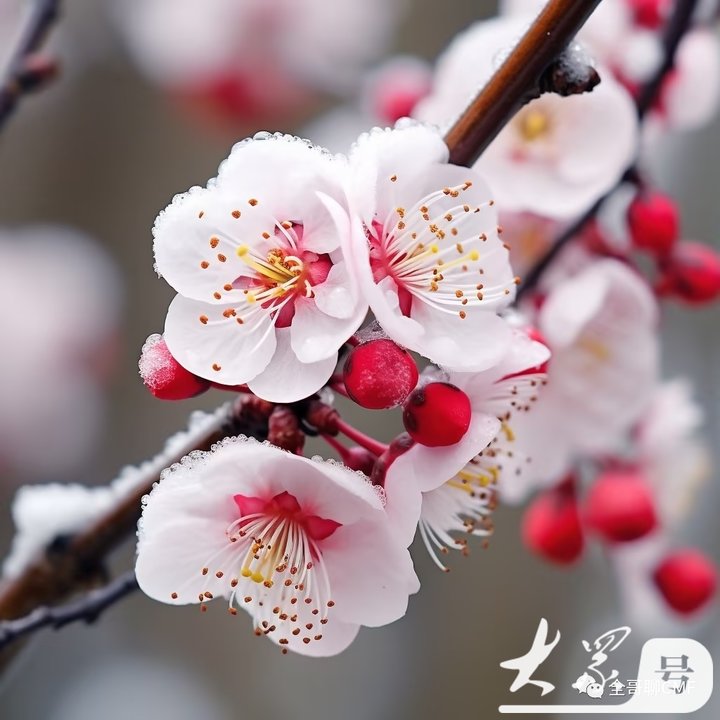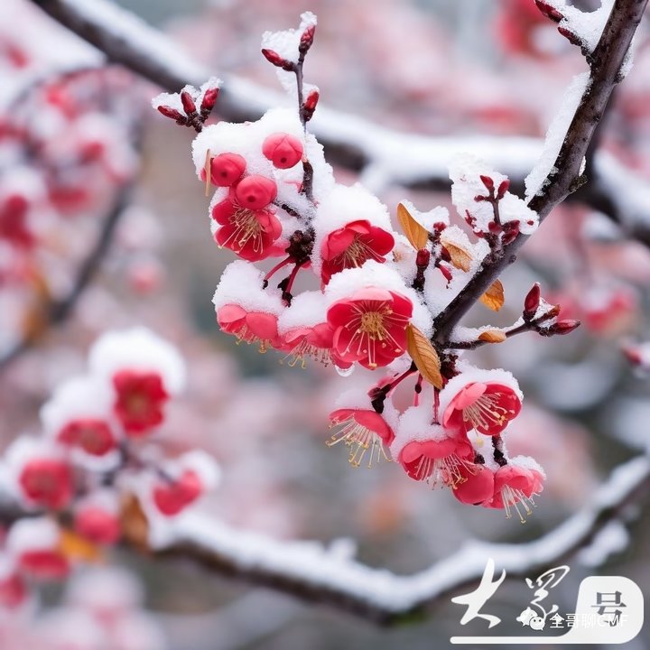 在寒冷的冬季,当其他植物都枯萎凋零时,梅花却迎风冒雪,傲然绽放。它的花朵虽然不大,但每一朵都充满了生机和活力。在白雪的映衬下,梅花更显得娇艳欲滴,散发着清新的香气。