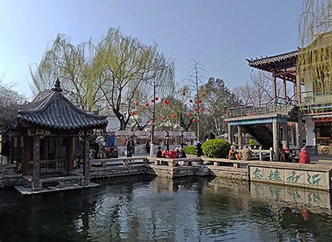 在济南,五龙潭“段位”不及趵突泉、大明湖、千佛山“三大名胜”,却是当地人爱逛的地方。尤其春日,园内草长莺飞,柳颦梅笑,泉水潺潺,鱼翔浅底,景色煞是撩人。