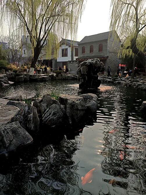 有了泉水,便有人择泉而居,或叠石造园。东流水街南北两端,各有一处名园,南为漪园,北为朗园。街南首有两个泉池隔街相望,东为月牙池,西为古温泉,漪园便建在古温泉畔,始建于清康熙年间。园主人张秀,字泗水,济南人,终身无官爵,家境却殷实,此园被当地人称为“张家园子”。