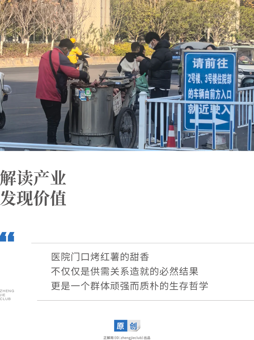有的是亲人绝症住院,最后一次分享的烤红薯,是记忆里永不褪色的温暖印记……因此,医院门口的烤红薯摊,显然绝非偶然的街景,而是一个沉默着融入城市肌理的微小生态。长久以来,它的存在太过于自然,以至于我们很少追问:为什么偏偏是烤红薯?为什么是它在这个充满焦虑与等待的地方,牢牢扎下了根呢?