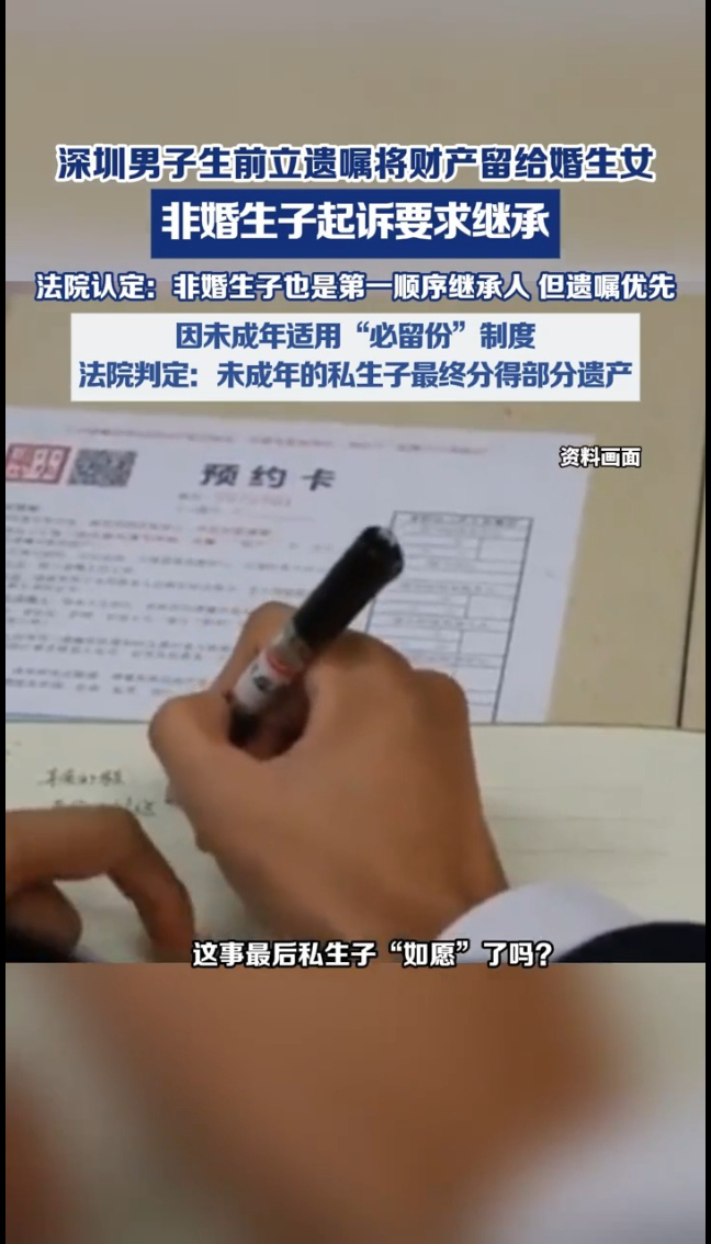 主播说丨深圳男子生前立遗嘱将财产留给婚生女 非婚生子起诉要求继承