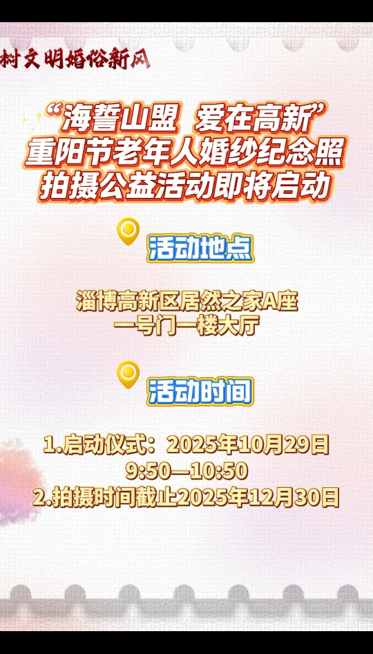 “海誓山盟 爱在高新”重阳节老年人婚纱纪念照拍摄公益活动即将启动