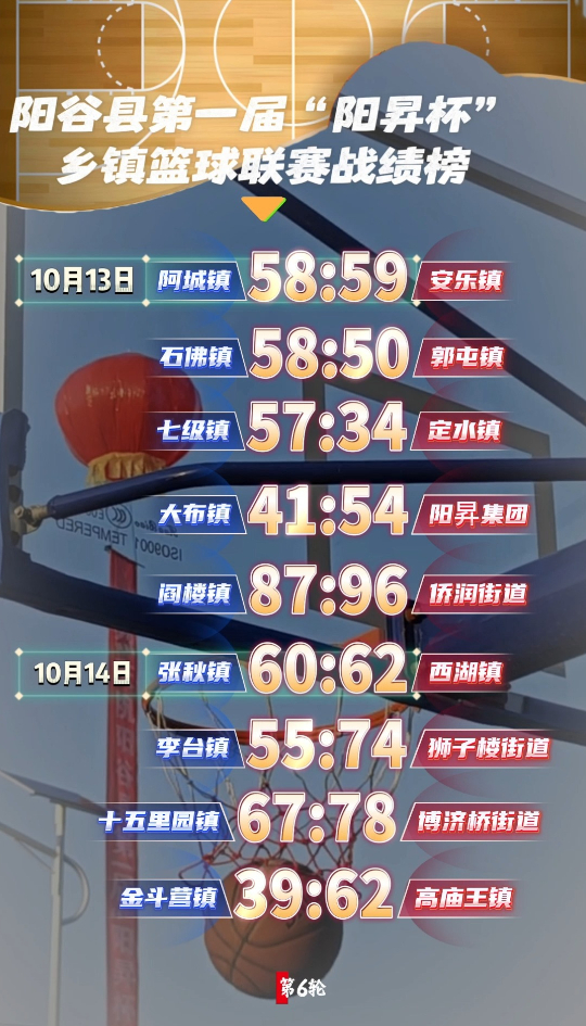 战绩榜!第6轮-第10轮 阳谷县第一届乡镇篮球联赛