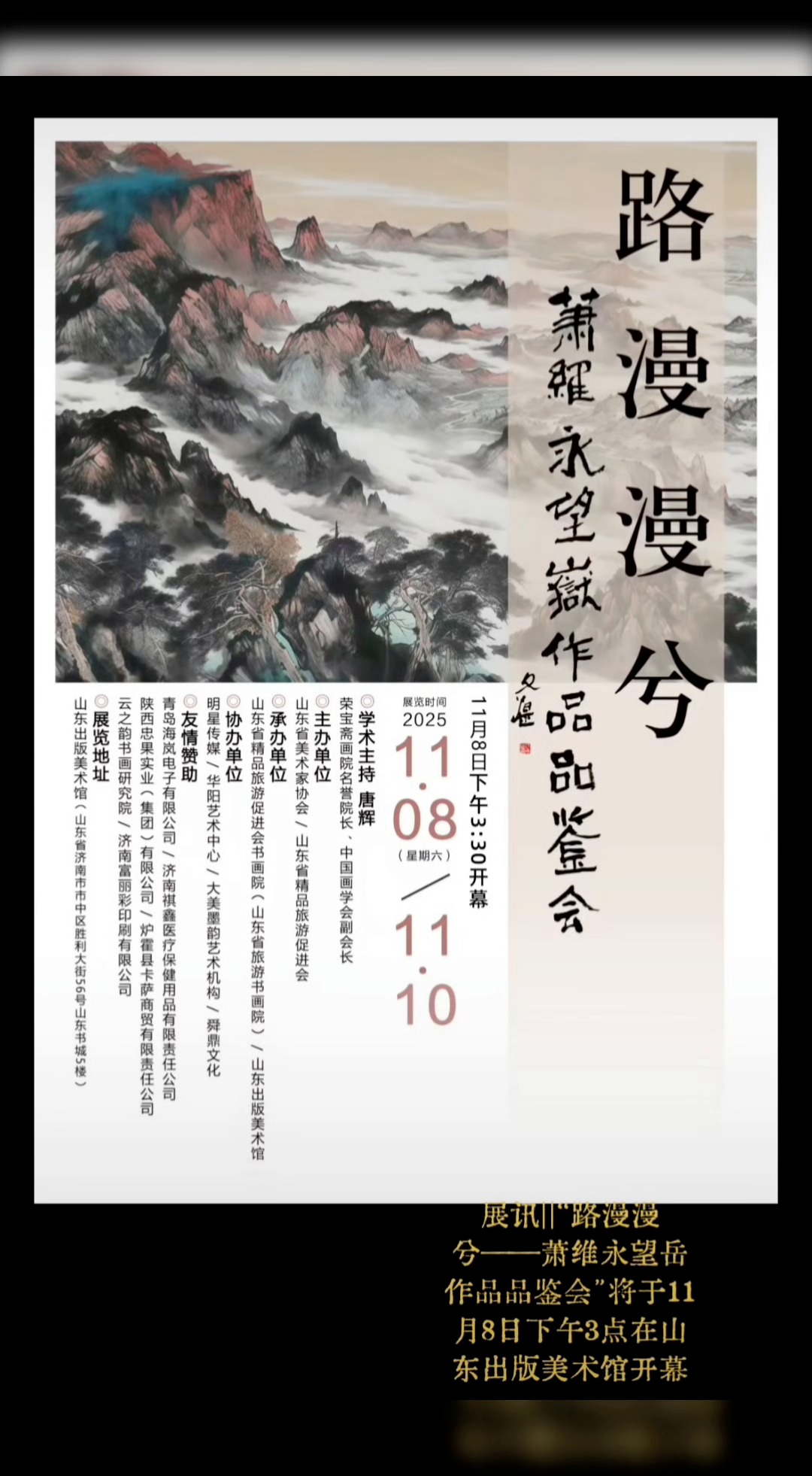 萧维永望岳作品品鉴会于11月8日下午3点在山东出版美术馆开幕