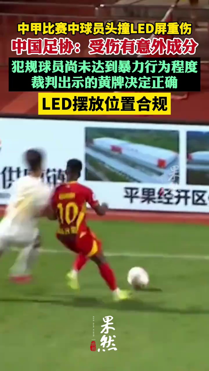 中甲比赛中球员拼抢一人头撞LED屏重伤,中国足协:受伤有意外成分,犯规球员尚未达到暴力行为程度,LED摆放位置合规