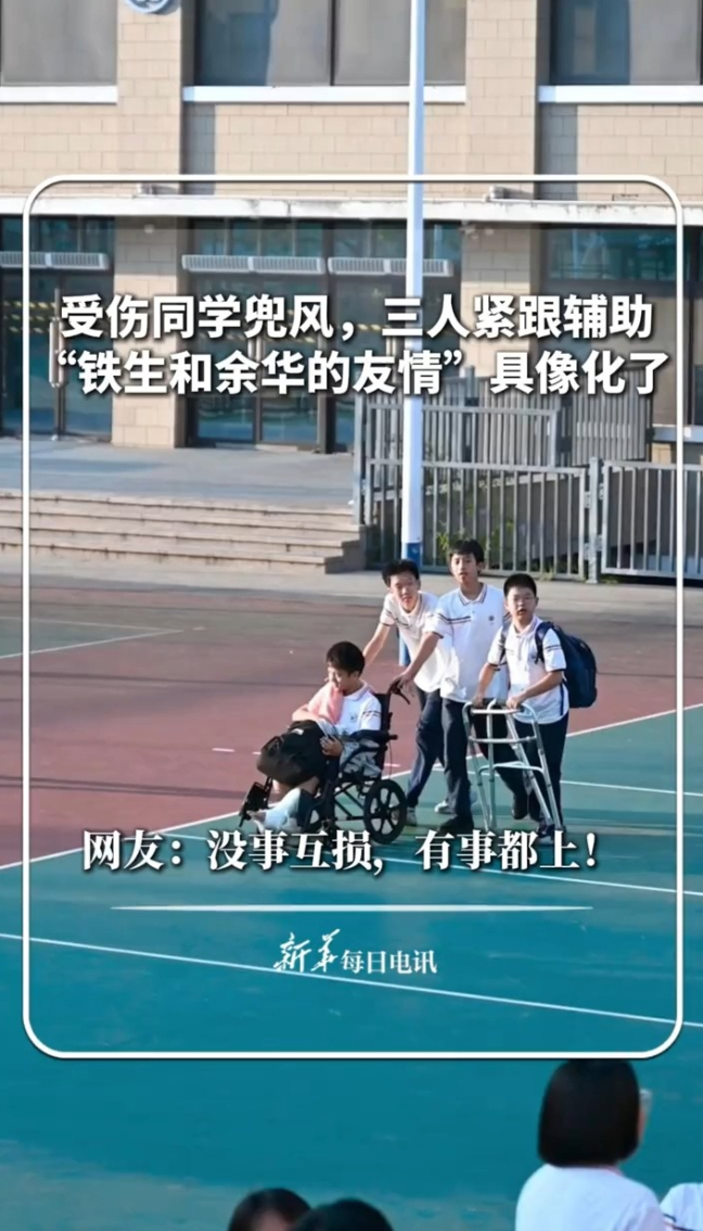 受伤同学兜风,三人紧跟辅助,“铁生和余华的友情”具像化了