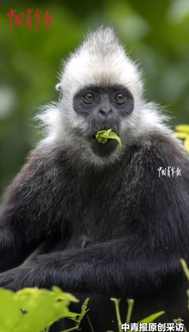 “你在巡山吗”?网友首次在自家村后偶遇白头叶猴,十分激动