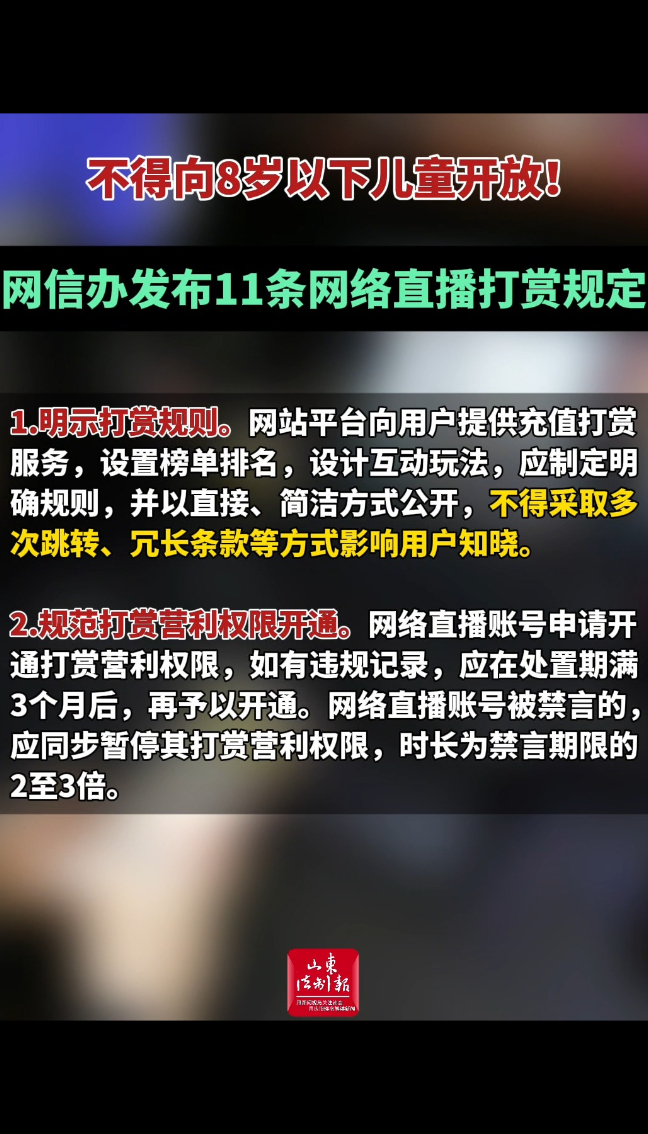 不得向8岁以下儿童开放!网信办发布11条网络直播打赏规定