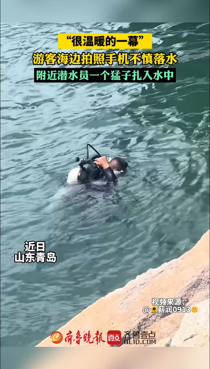 果然视频丨游客海边拍照手机落水,附近潜水员一个猛子扎入水中