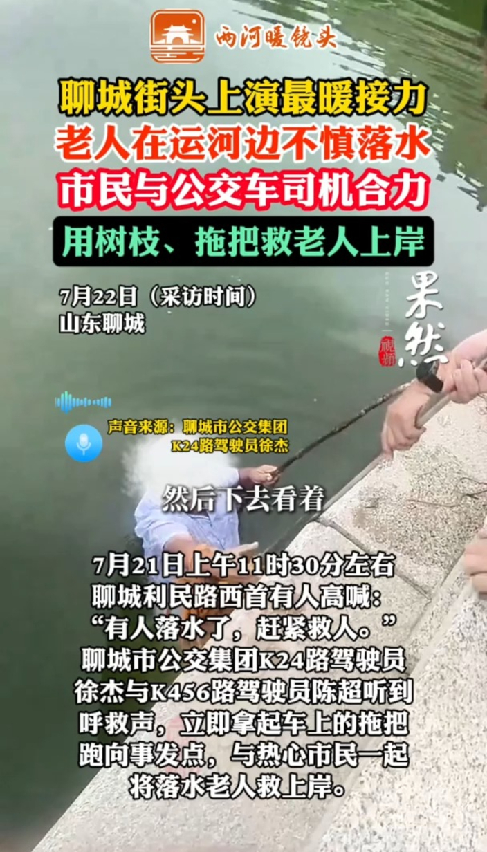 两河暖镜头丨聊城一老人不慎落水,市民与公交车司机合力救其上岸