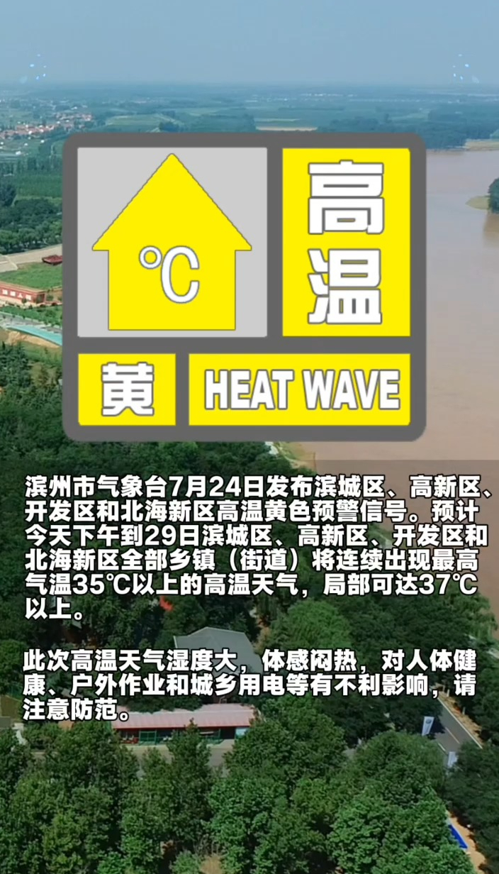 局部可达37℃以上!滨州市气象台发布高温黄色预警