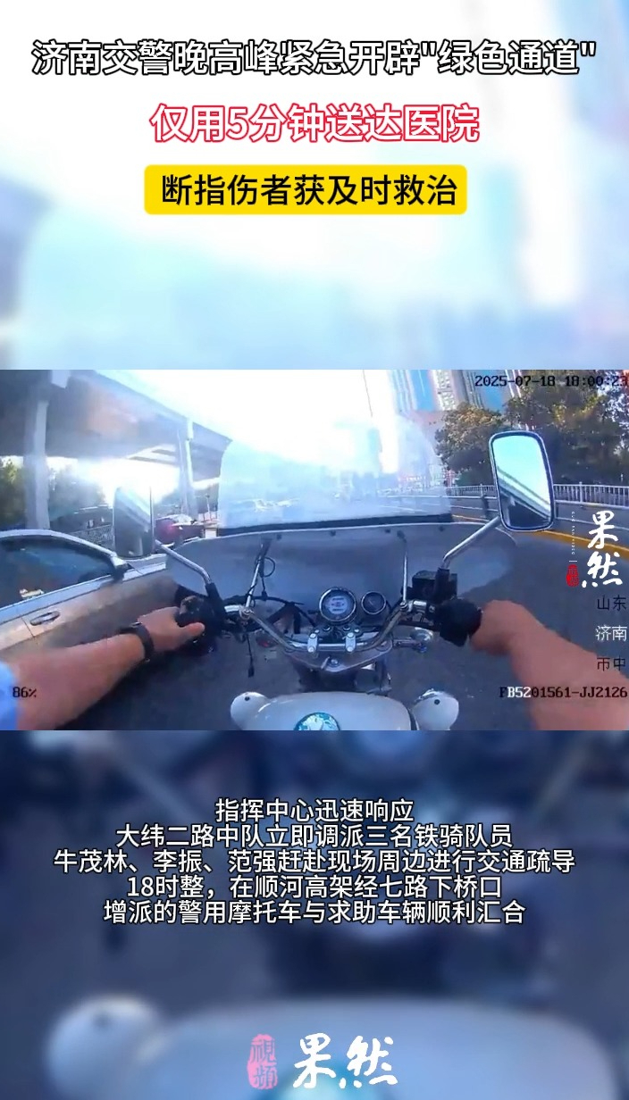 果然视频丨断指伤者急需救治,济南交警晚高峰紧急开辟绿色通道