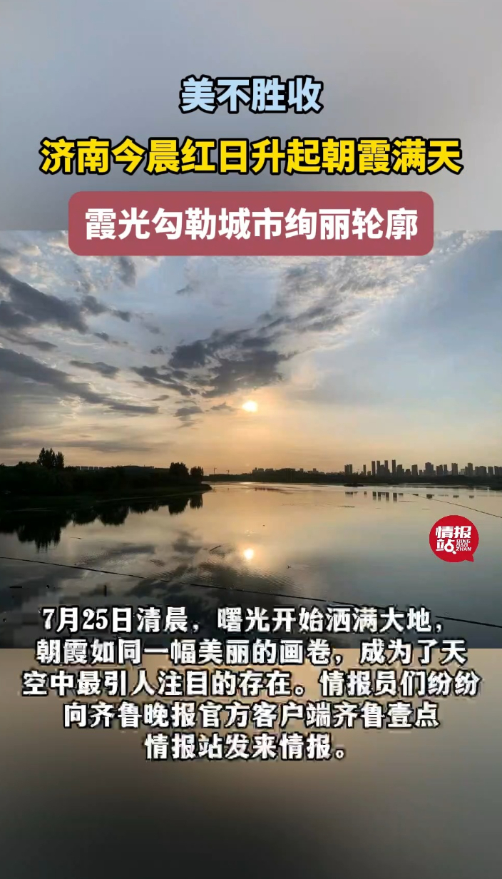 天气情报站|济南今晨红日升起朝霞满天,勾勒城市绚丽轮廓