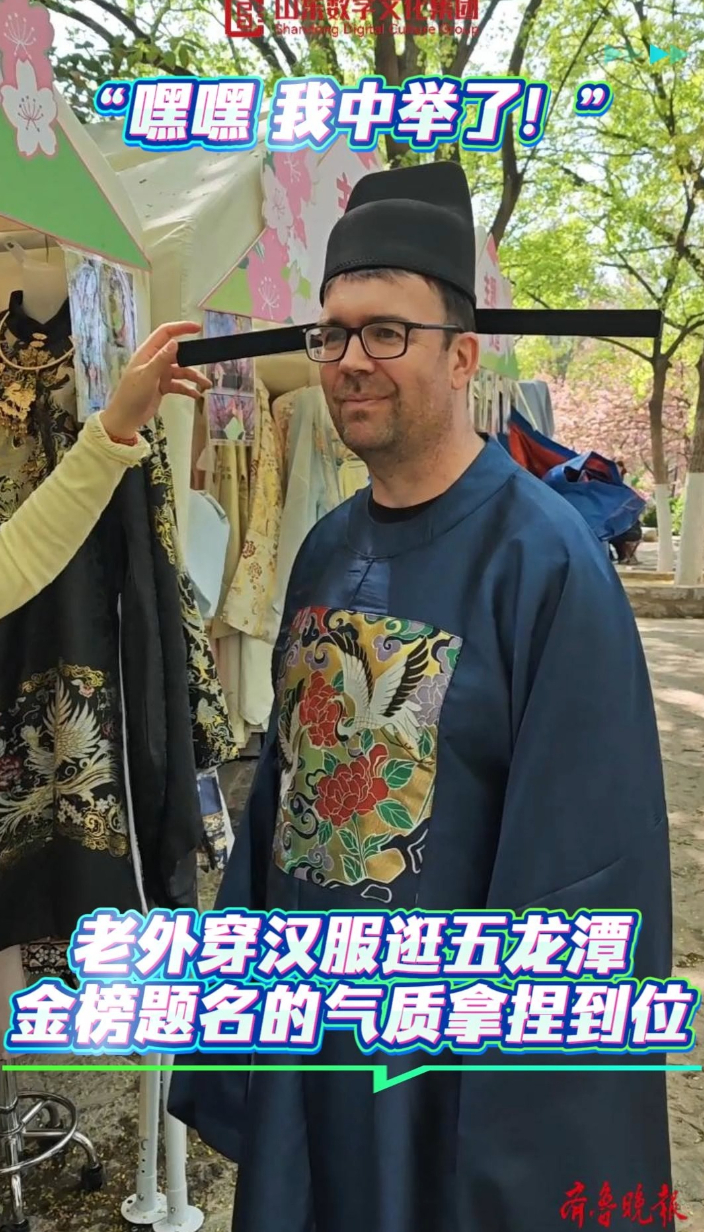 “嘿嘿,我中举了!”老外穿汉服逛五龙潭,金榜题名的气质拿捏到位