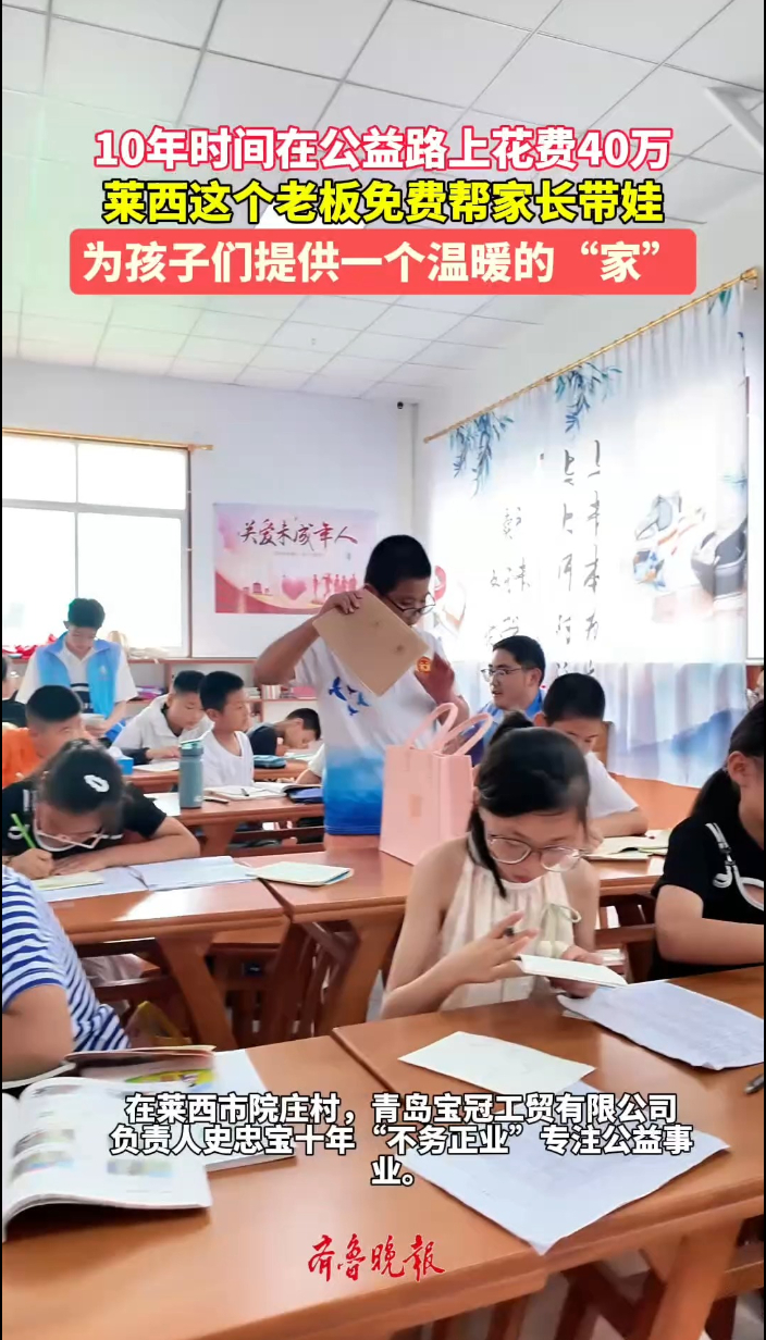 果然视频丨莱西这个老板免费帮家长带娃,10年花费40万为公益