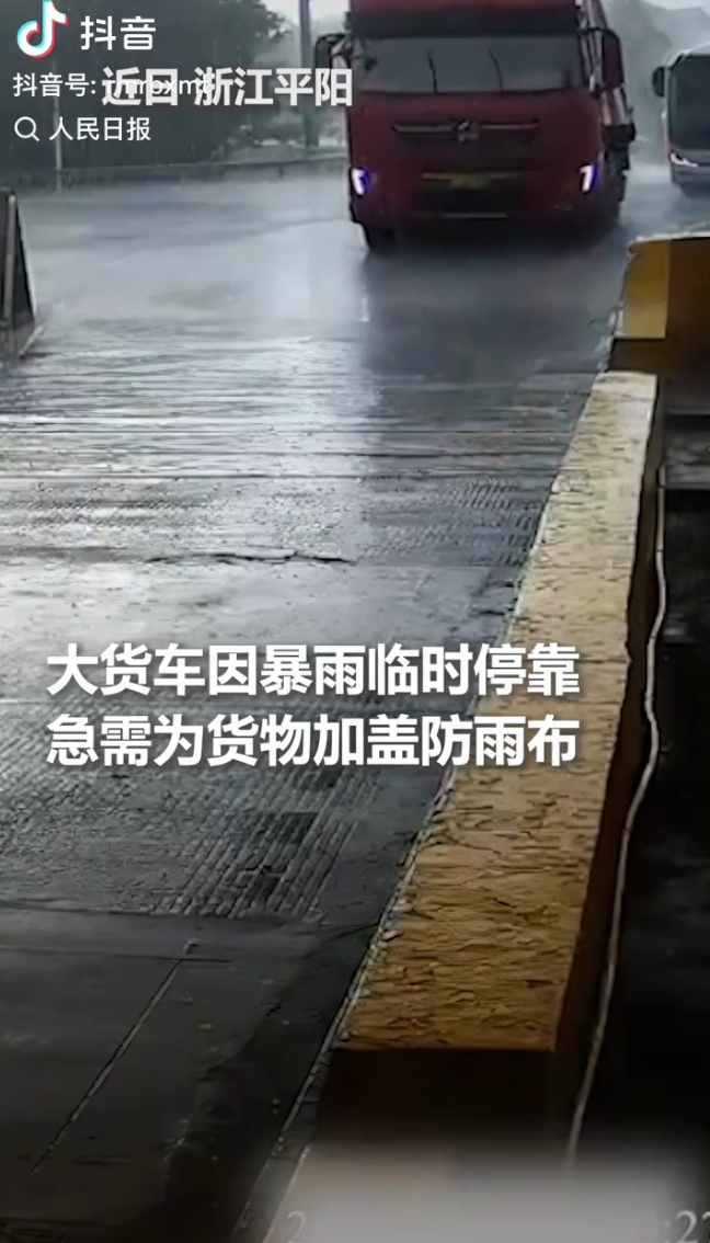 暖心一幕!收费站工作人员临时关停车道,帮货车司机盖好雨布