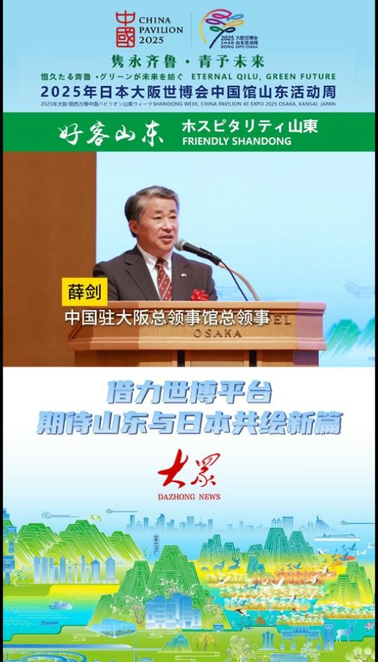 聚焦大阪世博会|中国驻大阪总领事馆总领事薛剑:借力世博平台,期待山东与日本共绘新篇