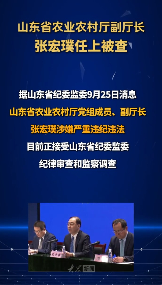 山东省农业农村厅党组成员、副厅长张宏璞涉嫌严重违纪违法,目前正接受山东省纪委监委纪律审查和监察调查。#纪委