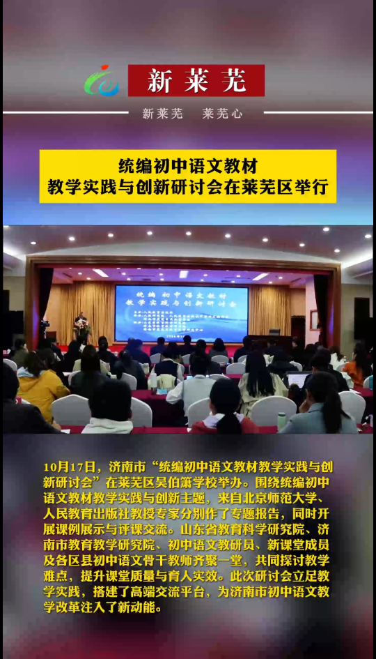 济南市“统编初中语文教材教学实践与创新研讨会”在莱芜区举行