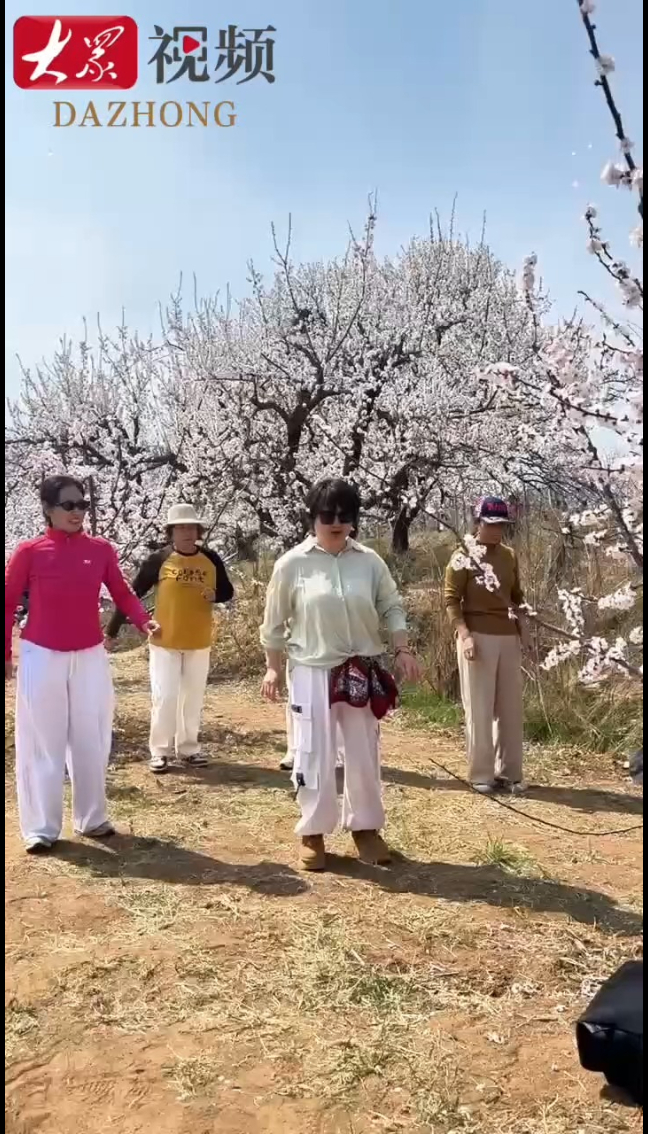 杏花树下撒欢跳舞!这里的游客太欢乐了