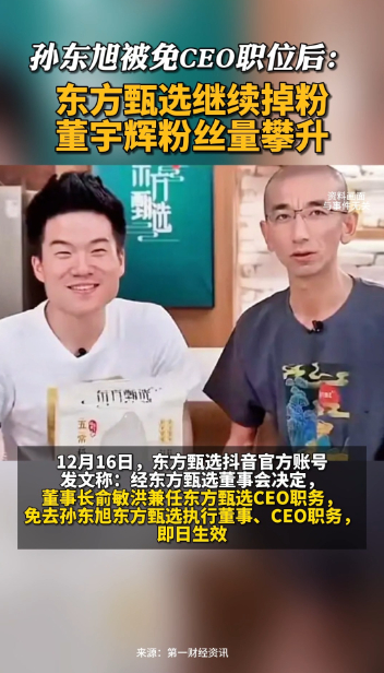 视频|孙东旭被免CEO职位后:东方甄选继续掉粉,董宇辉粉丝量攀升